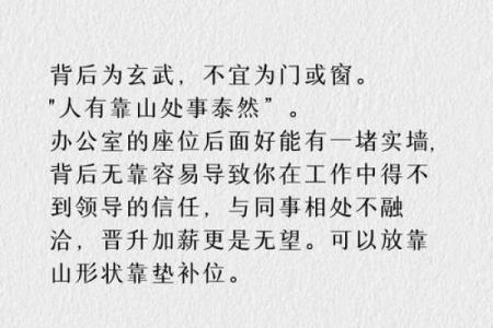 办公室风水摆台:提升整体气场的五个技巧 编辑:鸿瑞轩 02-13 浏览:107次 办公室风水摆台:提升整体气场的五个技巧 在现代职场中,越来越多的人开始关注办公室的风水布局,因为一个良好的办公室风水能够有效提升整... 办公室灯光设计与风水调节的完美结合 编辑:鸿瑞轩 02-13 浏览:105次 办公室灯光设计与风水调节的完美结合 在现代办公环境中,灯光设计不仅仅是为了提供足够的照明,更是对员工身心健康和工作效率的重要影响因... 办公室搬家风水禁忌避免错误选址助力事业腾飞 编辑:鸿瑞轩 02-13 浏览:94次 办公室搬家风水禁忌:避免错误选址,助力事业腾飞 在快速变化的商业环境中,办公室搬家是企业发展过程中常见的一环。然而,很多人忽视了搬... 办公室风水禁忌:面对厕所的影响与化解方法 编辑:鸿瑞轩 02-12 浏览:99次 面对厕所的办公室风水禁忌与化解方法 在风水学中,办公室布局的好坏直接影响到职场运势和个人的健康、财运。特别是办公室与厕所之间的关系... 办公室冰箱放置位置的风水注意事项 编辑:鸿瑞轩 02-12 浏览:104次 办公室冰箱放置位置的风水注意事项 在现代办公室中,冰箱不仅是储存食物和饮品的重要工具,更在某种程度上成为了员工日常生活的一部分。然... 办公室风水:养鱼的禁忌与吉祥寓意 编辑:鸿瑞轩 02-12 浏览:104次 在现代办公室环境中,养鱼不仅是装饰的一部分,更是许多人寻求风水吉祥的方式之一。鱼在风水学中象征着财富、繁荣和好运。适当的水族布置能... 办公室带套间的风水指南:打造最佳工作环境 编辑:鸿瑞轩 02-12 浏览:116次 办公室带套间的风水指南:打造最佳工作环境 在现代职场中,办公室的环境不仅仅是工作效率的基础,更在很大程度上影响着员工的心情、创造力... 办公环境风水如何影响多人办公室的气场 编辑:鸿瑞轩 02-11 浏览:101次 办公环境风水如何影响多人办公室的气场 在现代办公环境中,越来越多的企业开始关注办公室的布局和设计,认为它直接影响员工的工作效率和企... 办公室风水布局:提升职场运势的关键技巧 编辑:鸿瑞轩 02-11 浏览:109次 在职场中,办公环境的布局不仅仅影响到工作效率,还直接关系到个人运势和事业发展的潜力。风水学认为,办公室的布置对人的运势有着潜移默化... 办公室风水禁忌避免常见的负面影响 编辑:鸿瑞轩 02-10 浏览:117次 在现代职场中,办公室不仅是工作空间,也是生活的一部分,良好的环境有助于提高工作效率和心理健康。办公室风水作为一种古老的学问,近年来... 办公室风水布局误区与破解方法 编辑:鸿瑞轩 02-10 浏览:115次 办公室风水布局误区与破解方法 办公室风水在现代职场中逐渐被重视,很多人相信一个合适的办公室风水布局能够提升工作效率,增强人际关系,... 办公室刀把摆放位置与风水的调和方法 编辑:鸿瑞轩 02-10 浏览:109次 在办公室里,刀把的位置不仅仅是影响工作效率的一个小细节,它还与风水密切相关。无论是在家办公,还是在公司大楼中,合理的刀把摆放位置可... 办公室风水大师揭秘:提升职场运势的关键布局 编辑:鸿瑞轩 02-10 浏览:144次 在现代职场中,办公室风水成为越来越多人关注的话题。许多职场人士希望通过改善工作环境来提升自身的运势,促进事业的发展。办公室风水不仅... 办公室必备风水摆件排名第一的效果揭秘 编辑:鸿瑞轩 02-10 浏览:109次 办公室必备风水摆件排名第一的效果揭秘 在现代职场中,办公室不仅仅是工作和会议的场所,它还承载着员工的情绪、创造力以及工作的整体运势... 办公室风水禁忌:避免这些布局影响工作运 编辑:鸿瑞轩 02-10 浏览:124次 办公室风水禁忌:避免这些布局影响工作运 在现代职场中,办公室不仅仅是一个工作的空间,更是我们每天花费大量时间的地方。无论你是否相信... 办公室窗帘颜色风水调整,助力事业成功 编辑:鸿瑞轩 02-09 浏览:126次 办公室窗帘颜色风水调整,助力事业成功 在办公室的风水布局中,窗帘颜色被认为是影响气场、助力事业成功的一个重要因素。办公室作为我们工... 办公室风水:石头摆放的最佳位置与注意事项 编辑:鸿瑞轩 02-09 浏览:134次 办公室风水:石头摆放的最佳位置与注意事项 在许多办公室风水中,石头的摆放位置与类型扮演着至关重要的角色。通过巧妙地选择和摆放适合的... 办公室风水调整助力职场成功 编辑:鸿瑞轩 02-09 浏览:119次 职场风水与办公室布局息息相关,良好的办公室风水不仅能提升员工的工作效率,还能增强个人在职场上的运势。许多人可能认为风水与实际工作没... 办公室风水调整指南 助力职场成功的关键 编辑:鸿瑞轩 02-09 浏览:119次 办公室风水调整指南:助力职场成功的关键 在现代职场中,办公室不仅是工作场所,更是影响个人事业和心情的重要空间。很多人可能并未意识到... 办公室风水布局技巧助你职场飞升 编辑:鸿瑞轩 02-09 浏览:108次 办公室风水布局技巧助你职场飞升 在职场中,每个人都希望能够快速升职加薪、获得更多的机会和资源。而在现代社会中,除了个人努力和能力外... 首页上页2627282930下页尾页