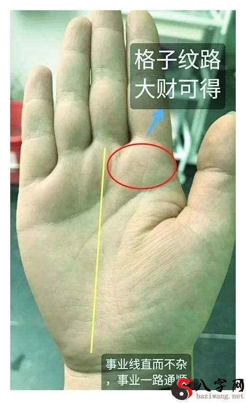 掌纹在无名指底端出現“井字纹”掌纹这个地方出現此纹理,一生的财气必定会出现大财必得,横财运气充沛。再加上胸部步步高升,意味着一生的工作顺丰快运顺水。(融合福主的八字看,也是个好命,一生福分非比平常人)。